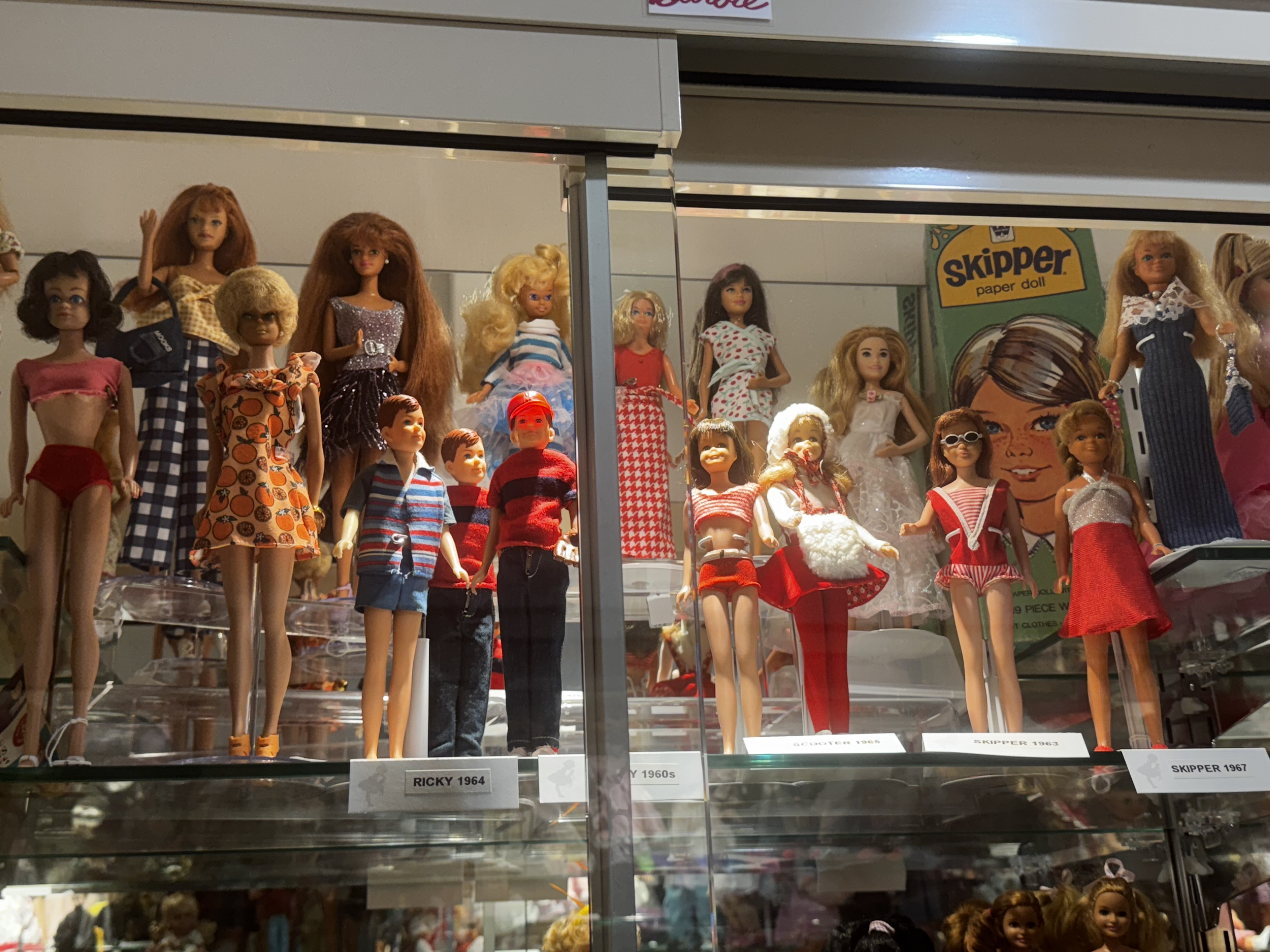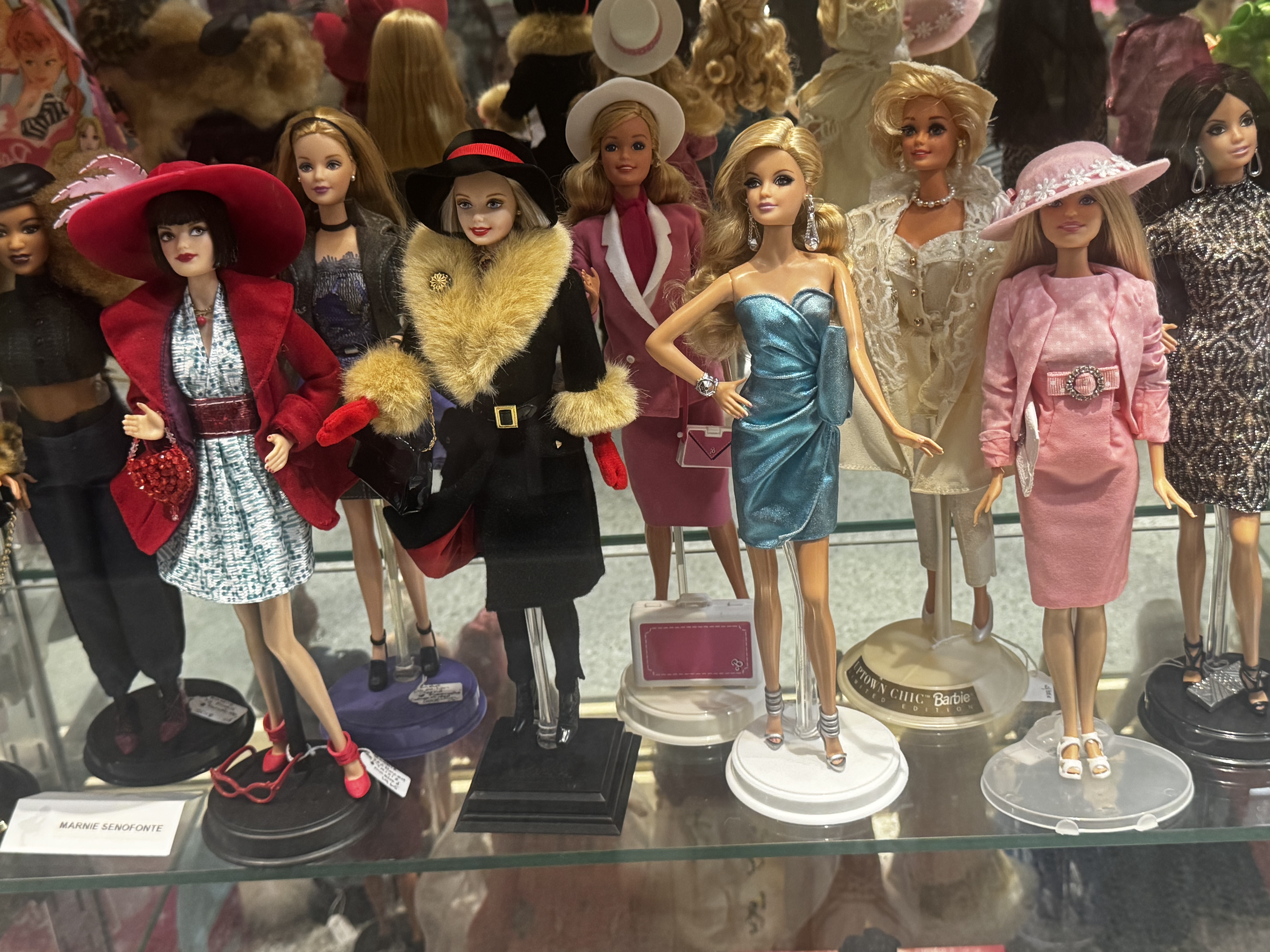At My Doll Cottage, our collection showcases Barbie’s careers and style through the decades. From early classics to limited editions, famous icons and fantasy designs — along side the dolls many of us grew up playing with — the display reflects how she evolved along side society. Ken stands beside her, along with her friends, pets and sisters — Skipper, Kelly and Stacie — forming a world that extended far beyond the original fashion model.