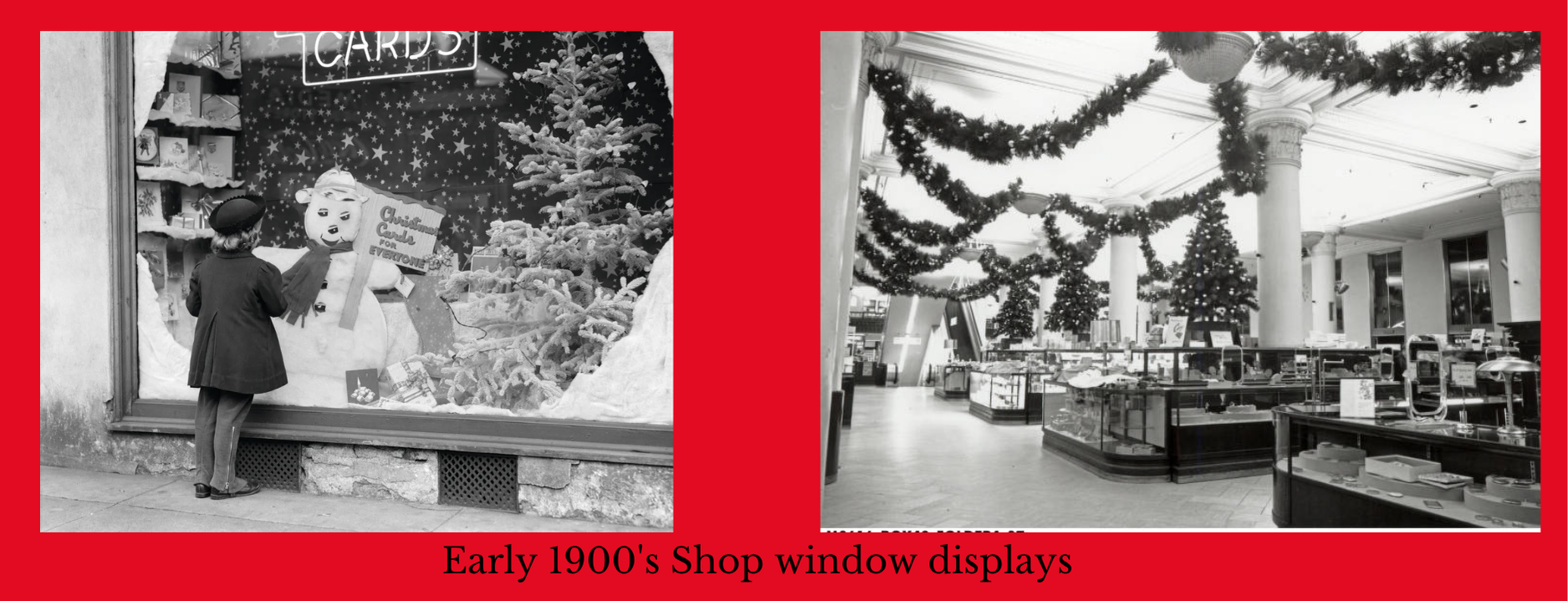 In the early 1900s, big city department stores began inviting children to visit Santa in person. Store Santas sat in decorated “grottos”, surrounded by twinkling lights, toy displays, and sometimes even moving figures of elves and reindeer. Shop windows became miniature stages, with animated scenes of trains puffing along tiny tracks, dolls “dancing”, and elves hard at work. For many children, these visits were the first time the idea of Santa’s workshop felt real – a magical place that might just exist beyond the snow.