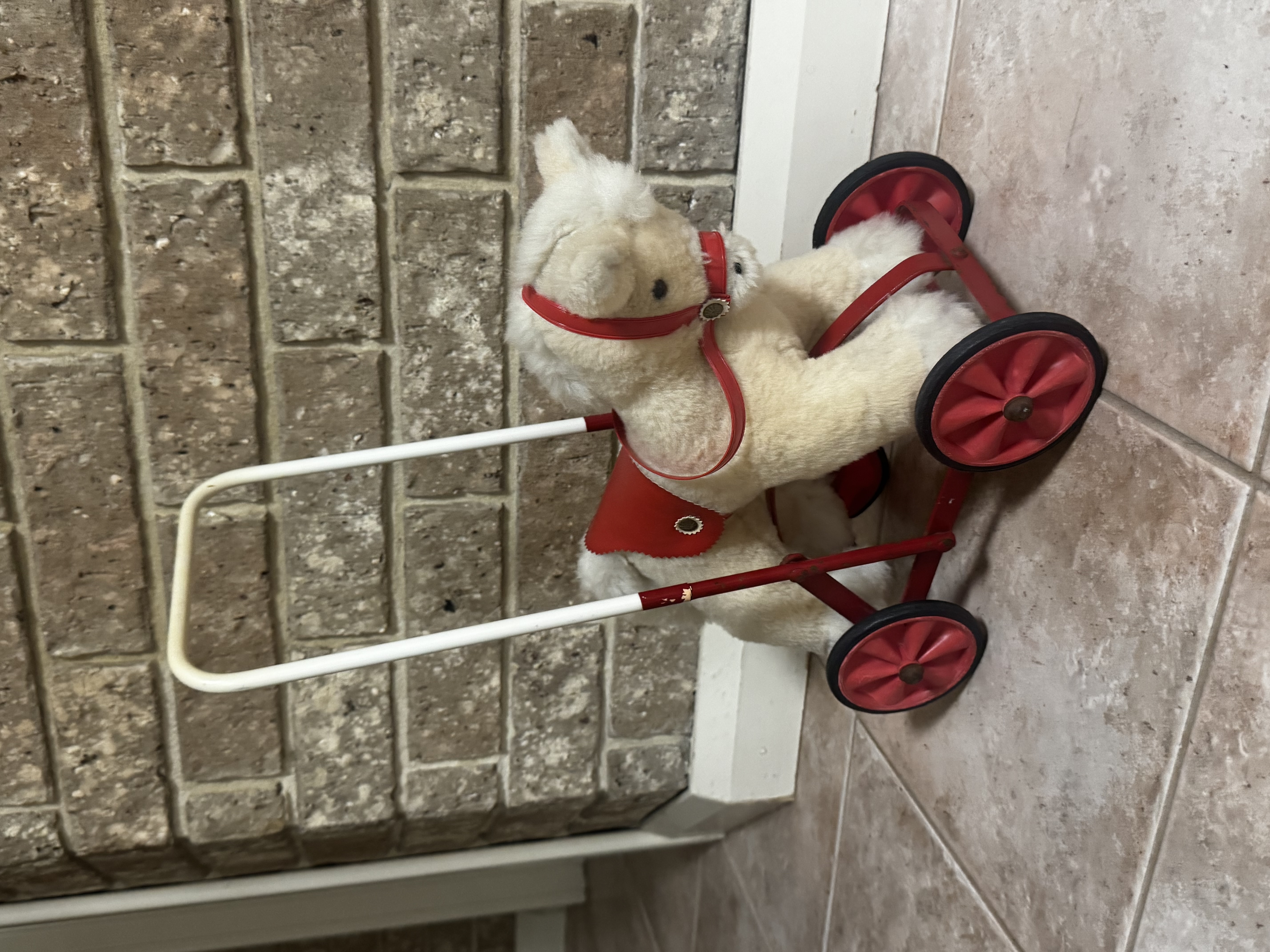 • Push-along toys, including horses and dogs mounted on steel frames