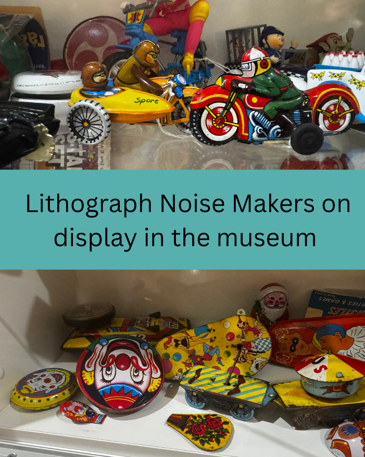 Today, lithographed tin clackers and whistles are treasured by collectors and museums alike. Their craftsmanship, playful spirit, and bold illustrations offer a window into mid-century life and post-war optimism.